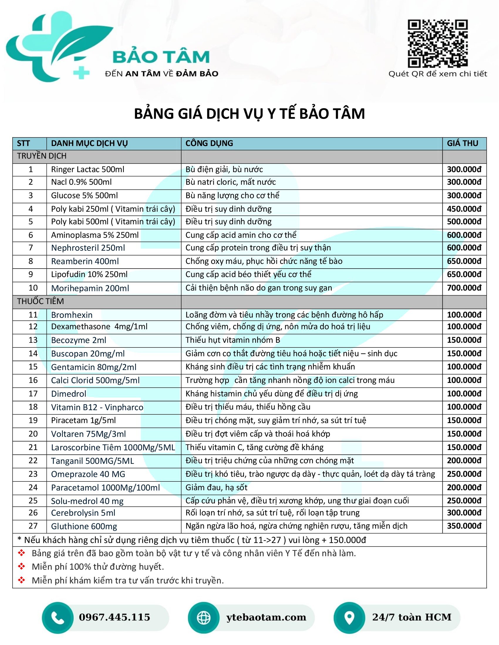 📌 Bảo Tâm báo giá truyền nước biển tại nhà TPHCM